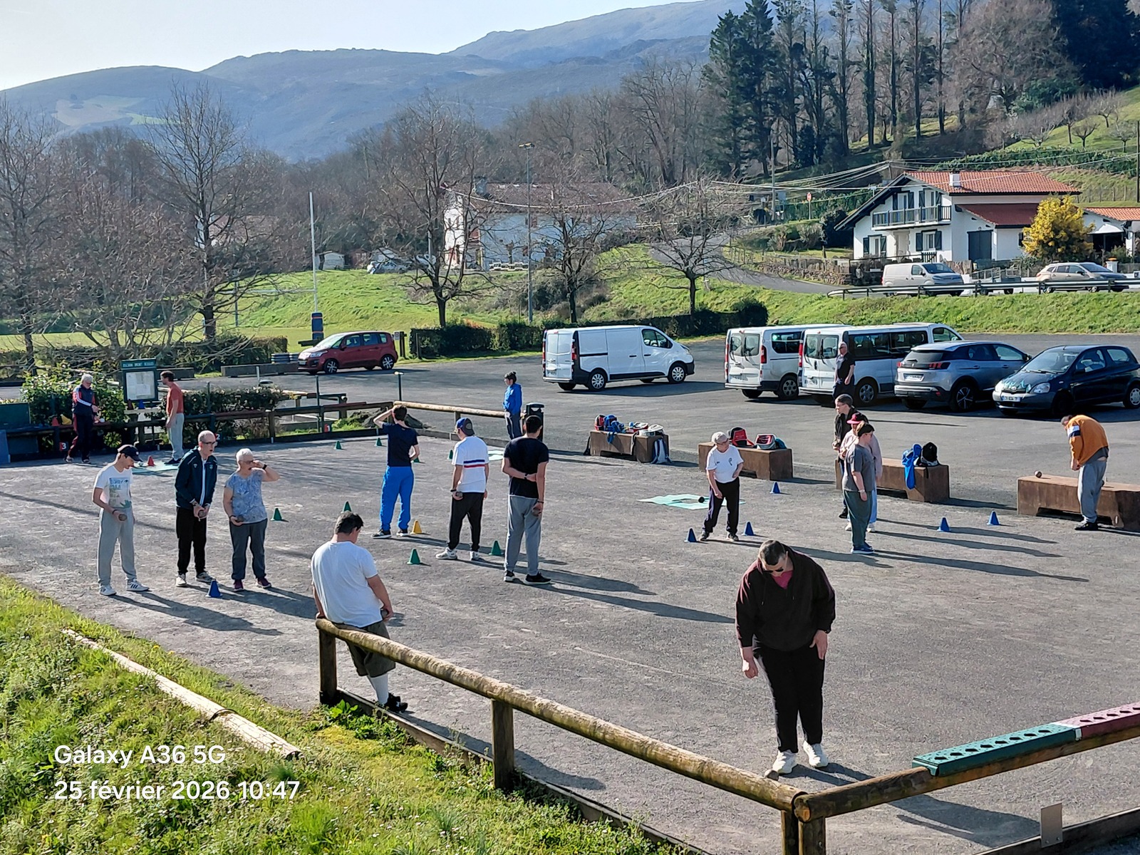 Dans la matinée du mercredi 26 février 2026, le club d'Ascain Sport Boules a accueilli ses licenciés des foyers de Urt et de Saint Palais pour un entraînement Para Sport Boules. Au total 16 participants accompagnés par leurs éducateurs ont pu profiter d'une météo exceptionnelle. Des notes sur les performances du moment des divers acteurs ont été relevées. Toujours aussi motivé, notre multiple champion de France s'est donné à fond avec en point de mire le prochain championnat de France qui aura lieu en juin à Rieumes (31). Félicitations à tous pour cette matinée réussie.